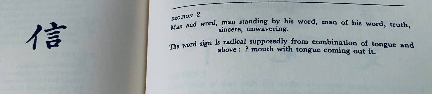 Upon what the written character contains, Fenollosa/Pound have Confucius saying, “A person’s character is apparent in every brushstroke.” Just so, the written word, the spoken word.